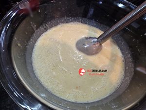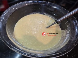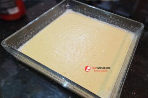 5. Fırın tepsisini yağlayalım ve akışkan hamurumuzu tepsiye yayalım.
