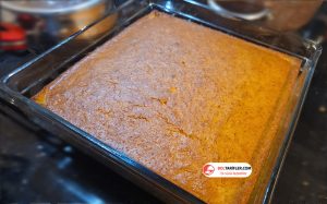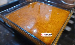 8. Şerbeti de ılık olarak revani kekimizin üzerine dökelim. (her ikisi de ılık olmalı).