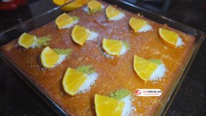 7. Kızaran revani kekimizi fırından çıkaralım ve ılınmasını bekleyelim.