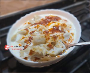 11. Pişen mantıları kevgir yardımı ile servis tabağına alalım.
