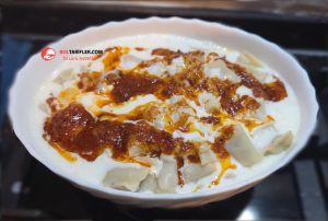 14. Servis tabağına aldığımız mantıların üzerine önce yoğurdu sonra üzerine sosunu dökelim ve sıcak servis edelim.