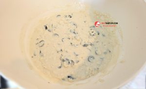 1. Derin yoğurma kabına ılık suyu, mayayı, tuzu, zeytinyağını ve dilimlenmiş siyah zeytini alalım ve karıştıralım.