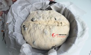 6. Hamurun üzerine bıçakla uzunlamasına çizik atalım ve 200 derece ısınmış fırına sürelim.