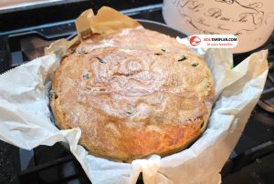 8. Pişen ekmeği fırından çıkaralım ve kalıbında soğumaya bırakalım.