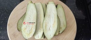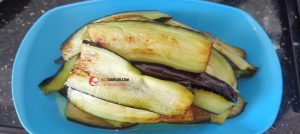 1. Patlıcanları uzunlamasına yarım santim kalınlığında dilimleyelim.
