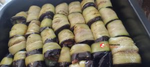 7. Tüm patlıcanları aynı şekilde hazırlayalım ve fırın tepsisine dizelim.