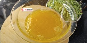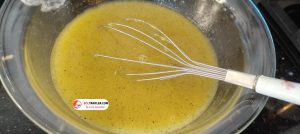 6. Ayrı derin küçük bir kapta portakal suyu, limon suyu ve zeytinyağını karıştırıp çırpıcı ile iyice çırpalım.