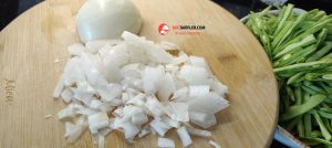 5. Kuru soğanları küçük küpler halinde doğrayalım, sarımsakları soyup küçük küçük doğrayalım.