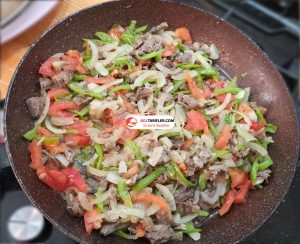 8. Doğradığımız domatesleri de ekleyip karıştıralım, tüm malzemeler yumuşayınca ocağı kapatalım.