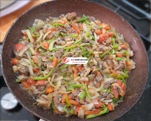 7. Üzerine kavurmayı ekleyip karıştıralım.