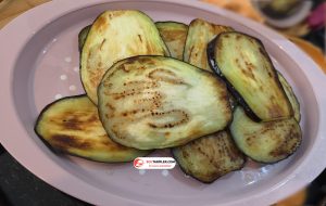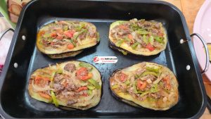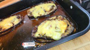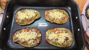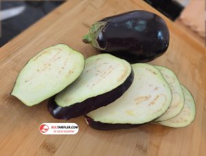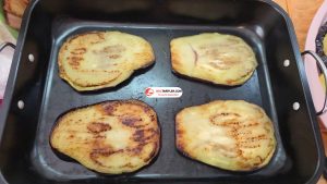 10.Fırın tepsisine 1 dilim patlıcan koyalım.