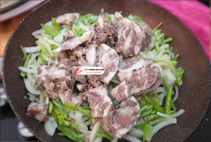 7. Üzerine kavurmayı ekleyip karıştıralım.
