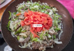 8. Doğradığımız domatesleri de ekleyip karıştıralım, tüm malzemeler yumuşayınca ocağı kapatalım.