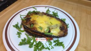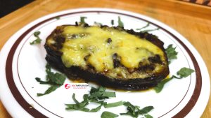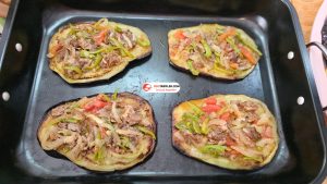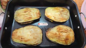10.Fırın tepsisine 1 dilim patlıcan koyalım.