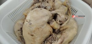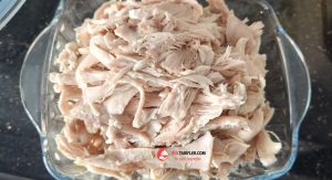 1. Öncelikle kalçalı tavuk butlarını bir tencereye alalım ve iyice haşlayalım (ben düdüklüde haşladım) ve haşladığımız tavukları kemiğinden ayırıp didikleyelim.