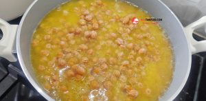 9. Haşlanmış nohutları da üzerine ekleyip tencerenin kapağını kapatalım.