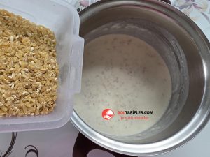 7. Ocağı kapatalım, tuzunu ekleyip karıştıralım ve 15 dk dinlendirelim (içindeki yarma formunu bulsun).