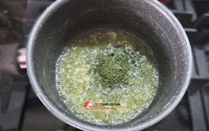 5. Ayrı bir sos tavasında tereyağı ve sıvıyağı birlikte eritip kızdıralım, üzerine kuru nane ekleyip ocağı kapatalım.