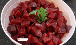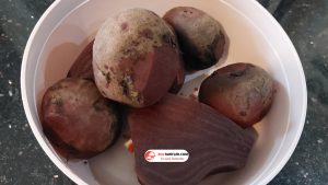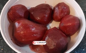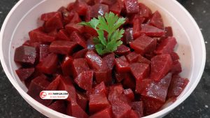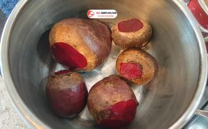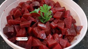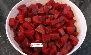 3. Haşlanan pancarların kabuklarını soyalım ve küp küp olacak şekilde doğrayalım.
