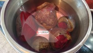 2. Normal bir tencereye veya düdüklü tencereye yerleştirelim, üzerine çıkacak kadar su dolduralım ve kırmızı pancarlar yumuşayıncaya kadar haşlayalım.