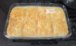 4. Kadayıflar sütlü şerbeti çektikçe ekleyelim, hepsini bir kerede eklemeyelim.