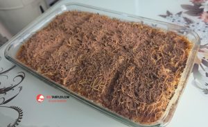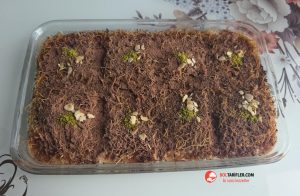 2. Hazır kızarmış kadayıfı fırın kabına alalım ve fırında ısıtalım.