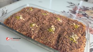 3. Hazırladığımız sütlü şerbeti ılık olarak kadayıfların üzerine gezdirelim.