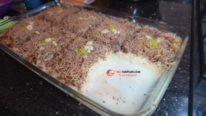4. Kadayıflar sütlü şerbeti çektikçe ekleyelim, hepsini bir kerede eklemeyelim.