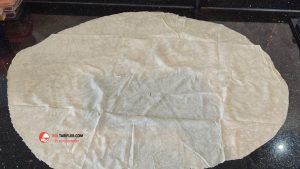 3. Yufkanın birini tezgaha tam açarak serelim.