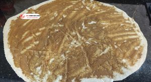 5. Üzerine diğer yufkayı örtelim ve onun da üzerine kalan tahinli haşhaşlı karışımı döküp heryerine fırça ile sürelim.