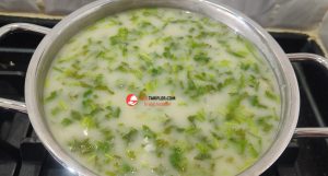 3. Başka bir tencereye yoğurt, un ve 2 bardak suyu koyalım, karıştırmayı hiç bırakmadan ocakta fokurdayana kadar pişirelim.