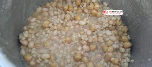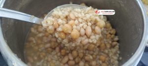 1. Düdüklü tencereye aşurelik buğday, kuru nohut ve kuru fasulyeyi koyalım.