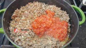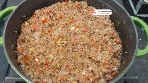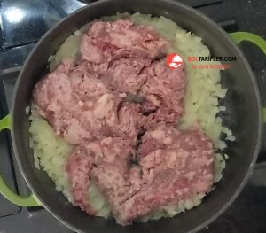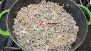 2. Kıymayı ekleyip iyice pişene kadar kavurmaya devam edelim.