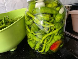 2. Kavanozun dibine doğranmış 1 diş sarımsak koyalım ve üzerine biberleri dolduralım, en üste yine doğranmış 1 diş sarımsak koyalım.