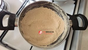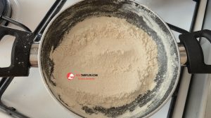 1. Öncelikle unu kavuralım, tavaya unu koyup ocağa alalım ve unun rengi hafif kahverengiye dönüşene kadar kavuralım.