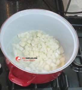 3. Tencereyi ocağa alalım, sıvıyağı ekleyelim.