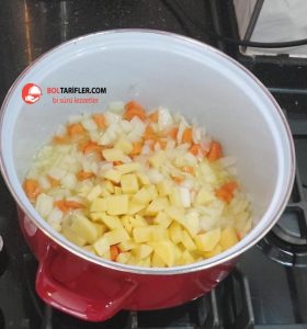 2. Kuru soğanı havucu ve patatesi küp küp doğrayalım.