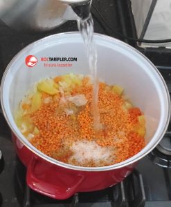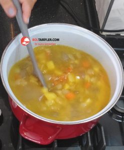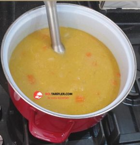 8. Eğer çorba çok kıvamlı olduysa kaynar su ekleyerek açabilirsiniz.