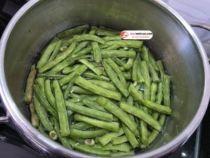 3. Düdüklü tencereye veya normal tencereye temizleyip hazırladığımız taze börülceleri koyalım ve üzerine çıkacak kadar su dolduralım.