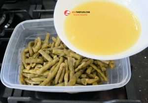 1. Öncelikle börülceleri bol su ile yıkayalım, uç kısımlarını ve yanlarındaki iplikli (kılçıklı) kısımları bıçak yardımıyla keserek temizleyelim.